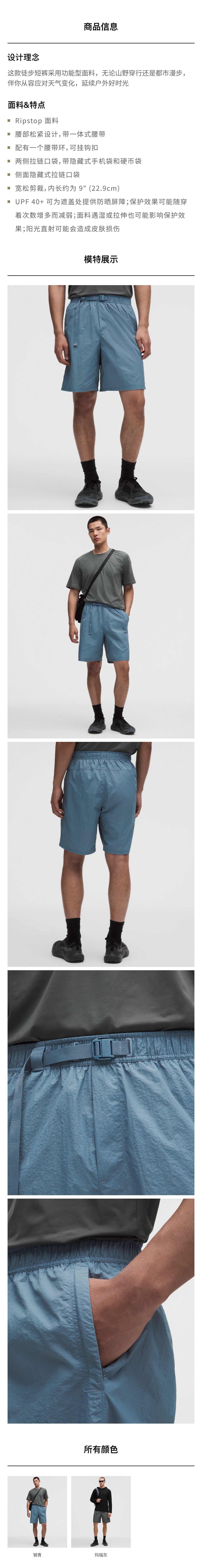 男士徒步短裤 9"